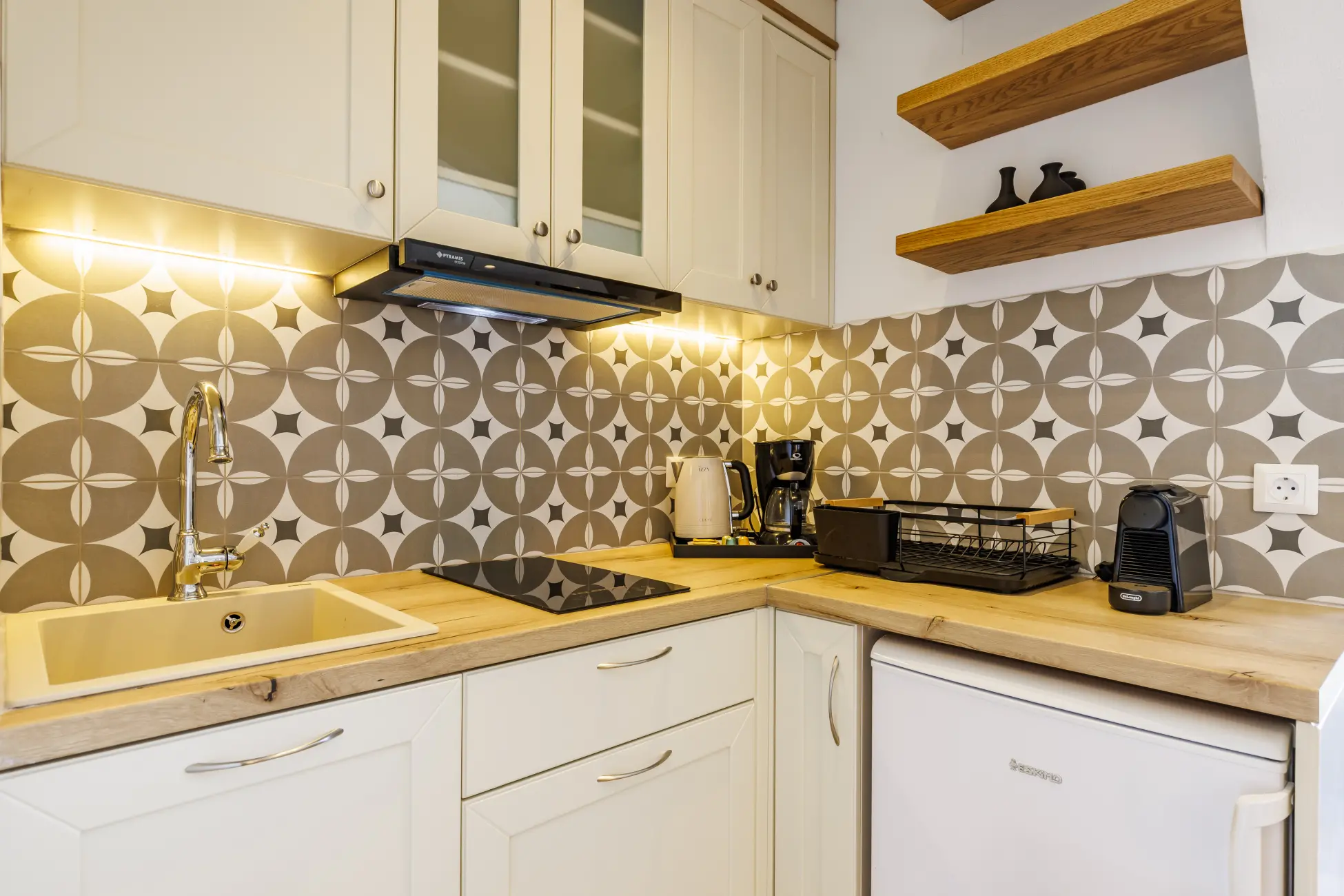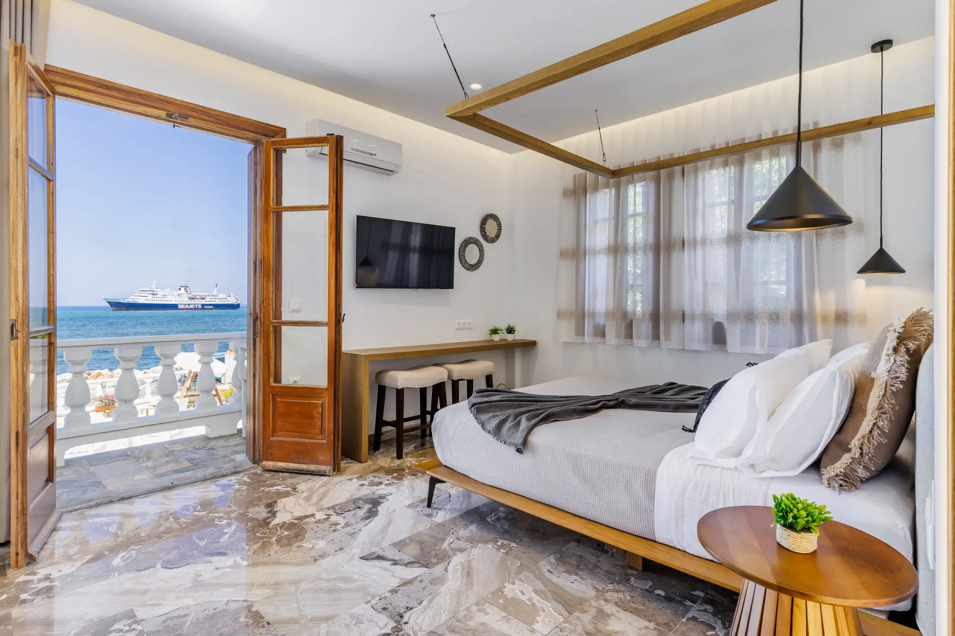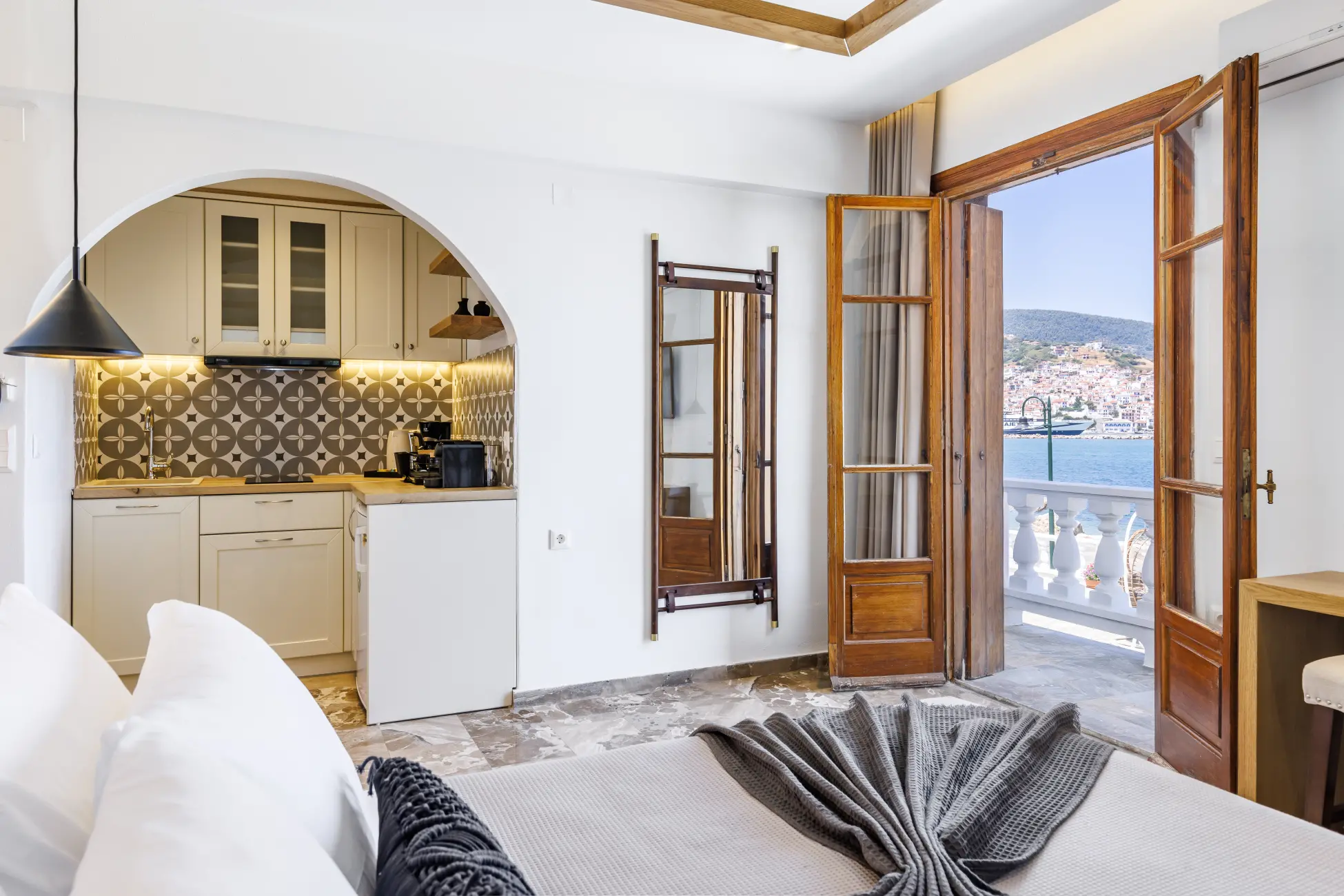 This larger studio combine both relaxation and a comfort like no other. The sea breeze at night is so welcoming, which compliment the sound of the waves. What a perfect lullaby. This studio has a private view from the balcony.